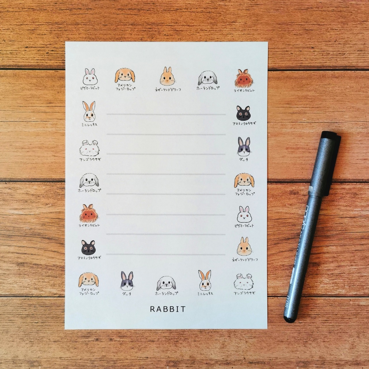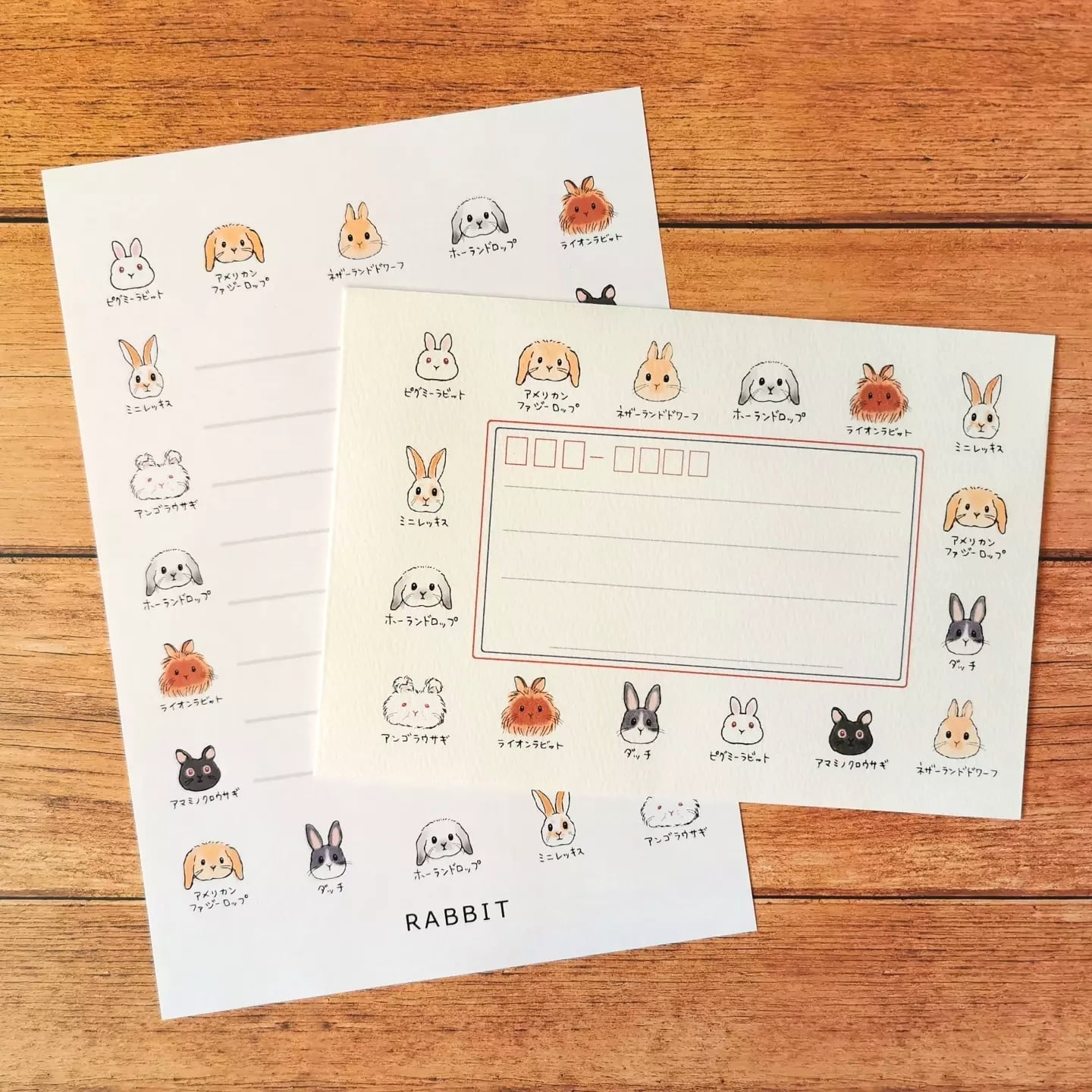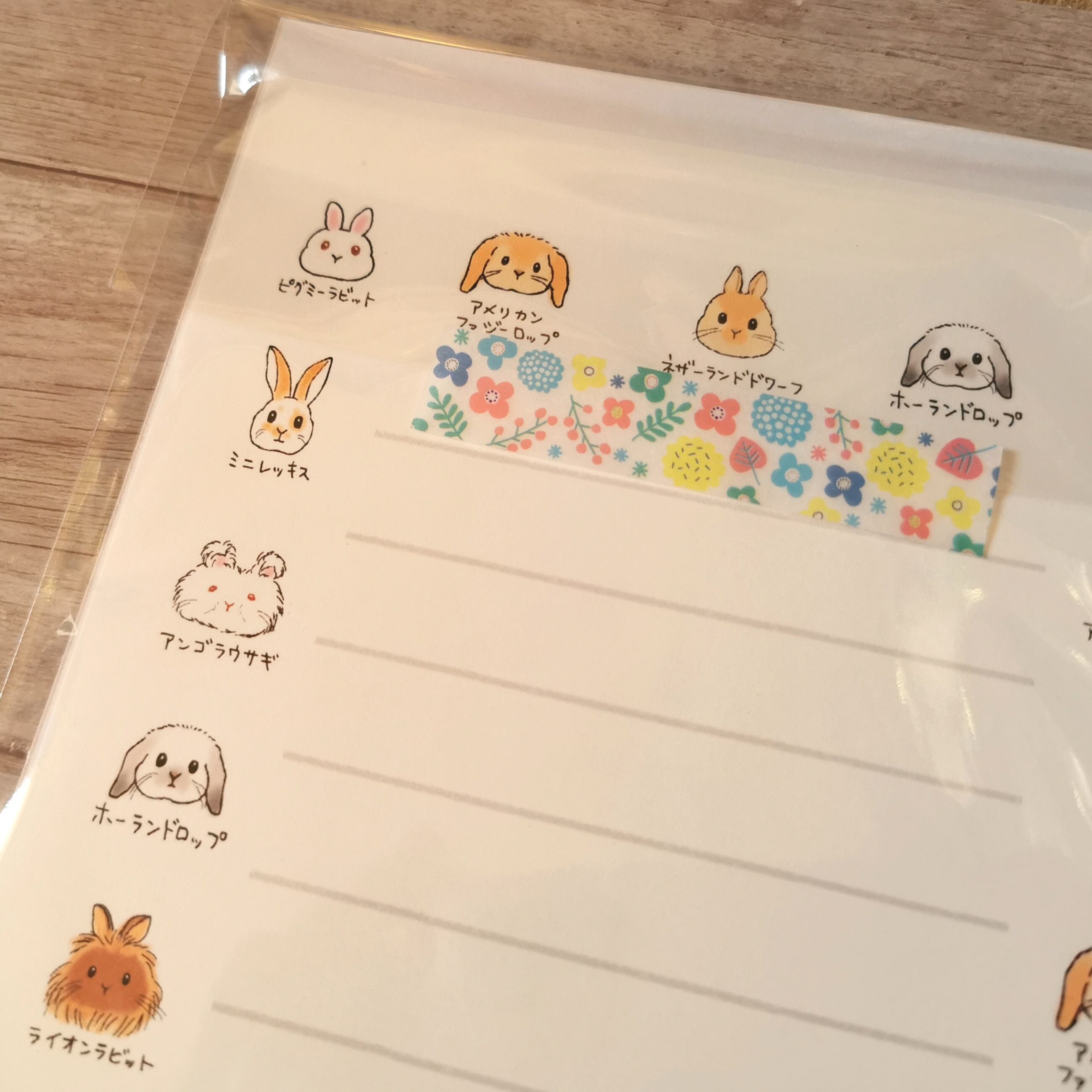 便箋にも封筒にもうさぎのイラストを散りばめています。色んな種類のうさぎのイラストです。見た人がワクワクした気持ちになるといいなと思ってデザインしました。