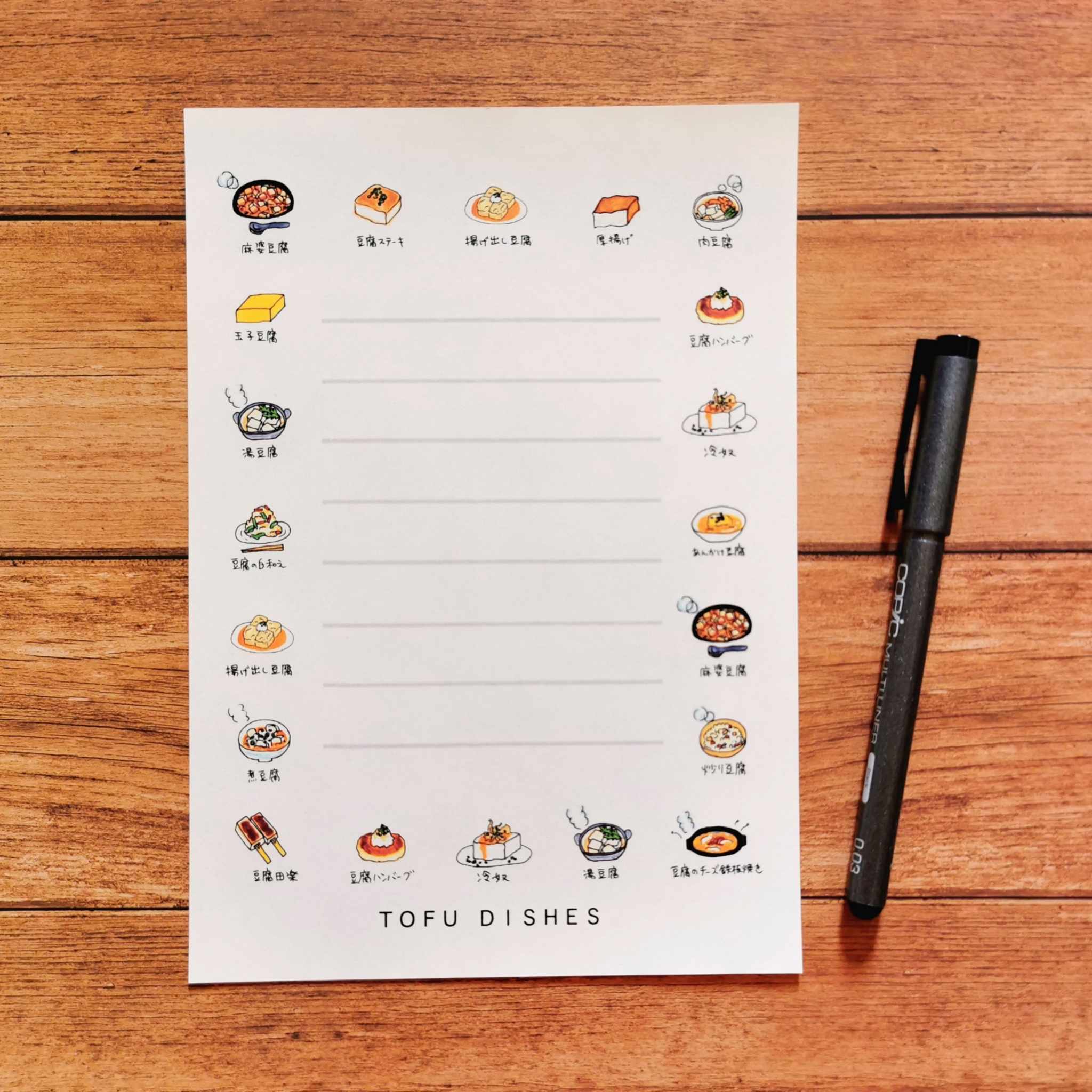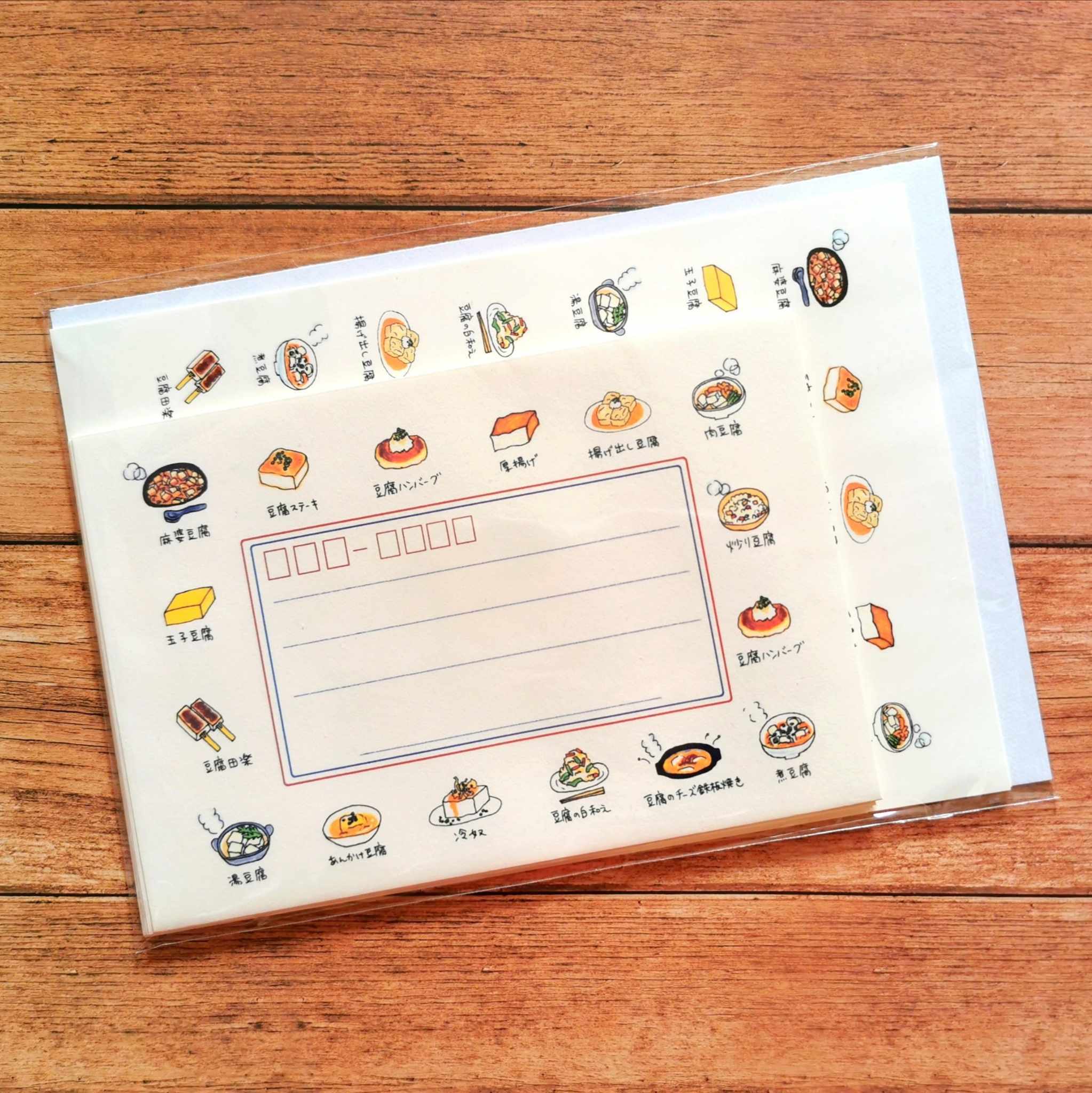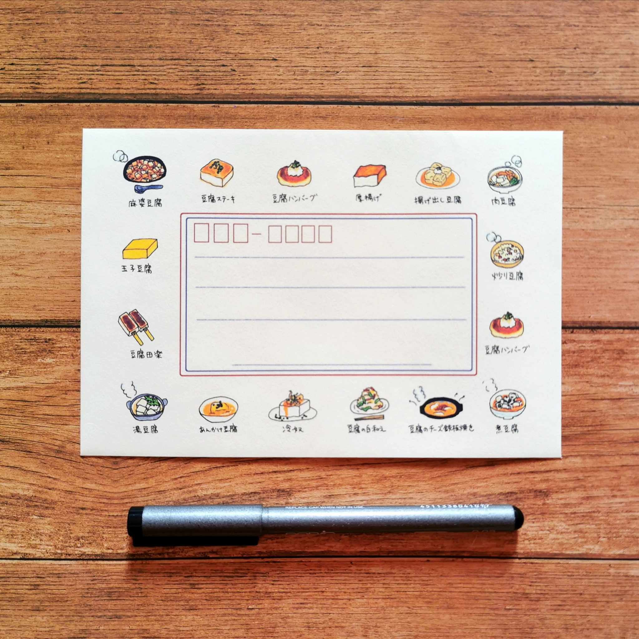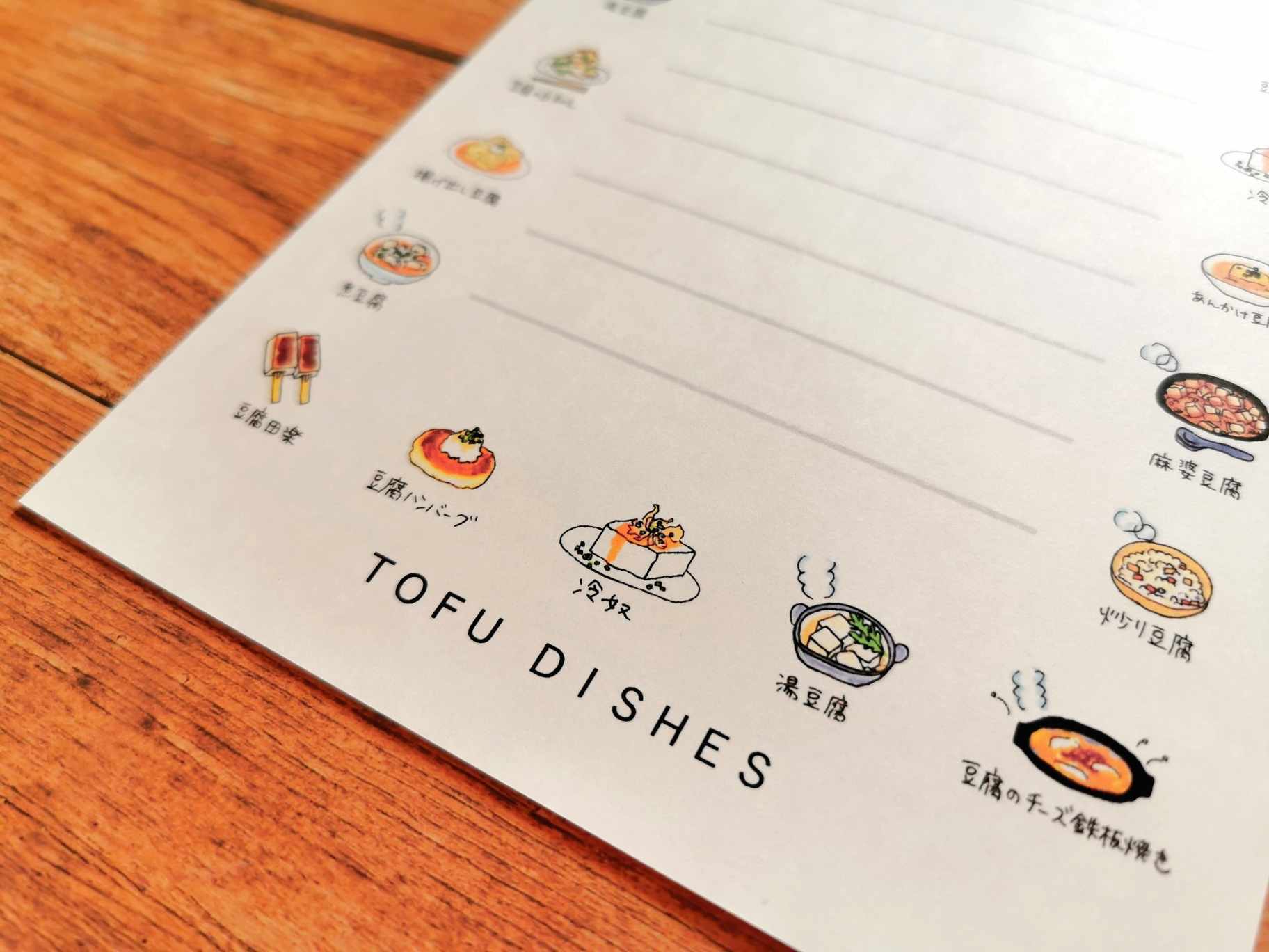 いろんな豆腐料理の手描きイラストをレターセットにしました^^