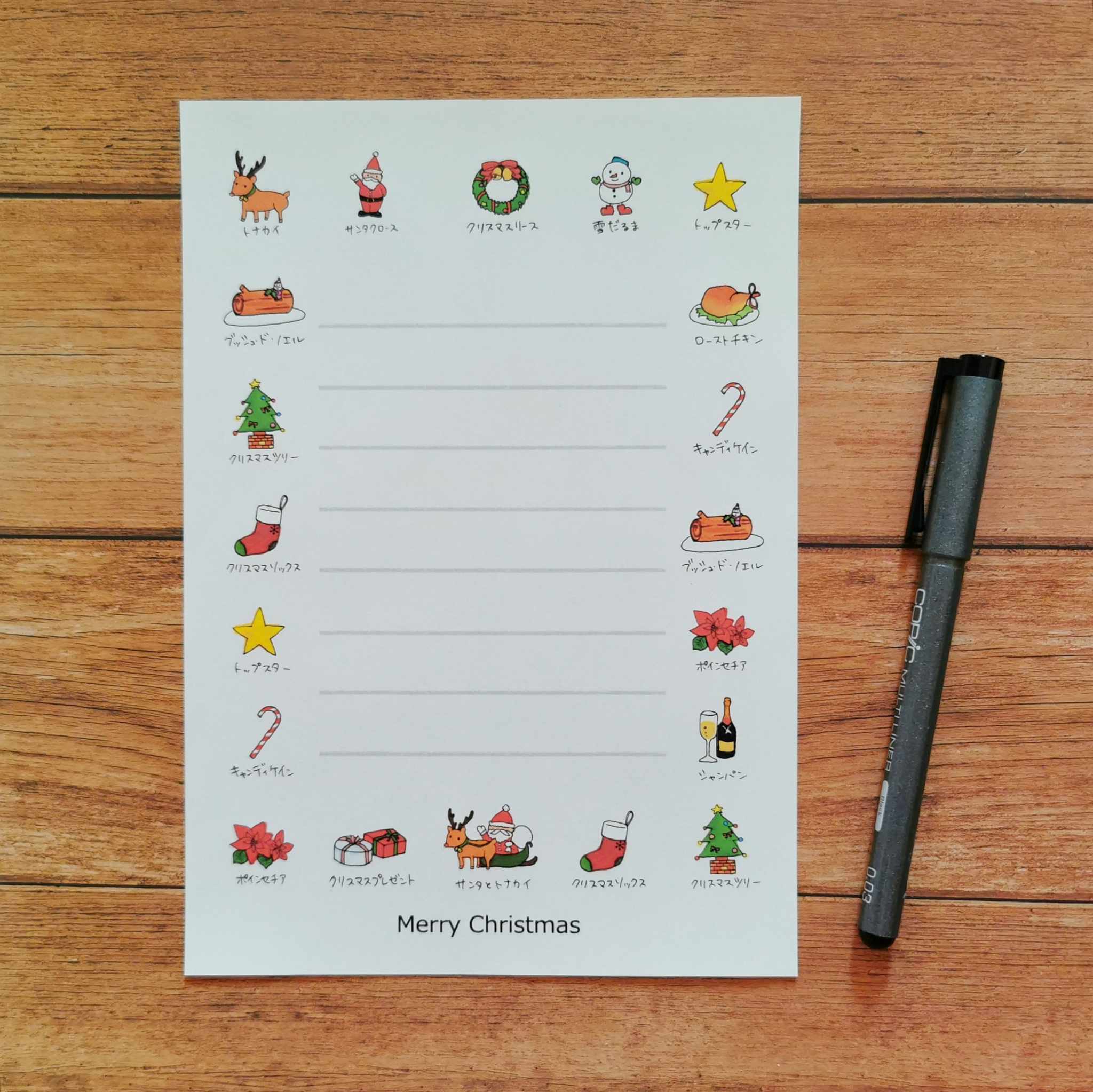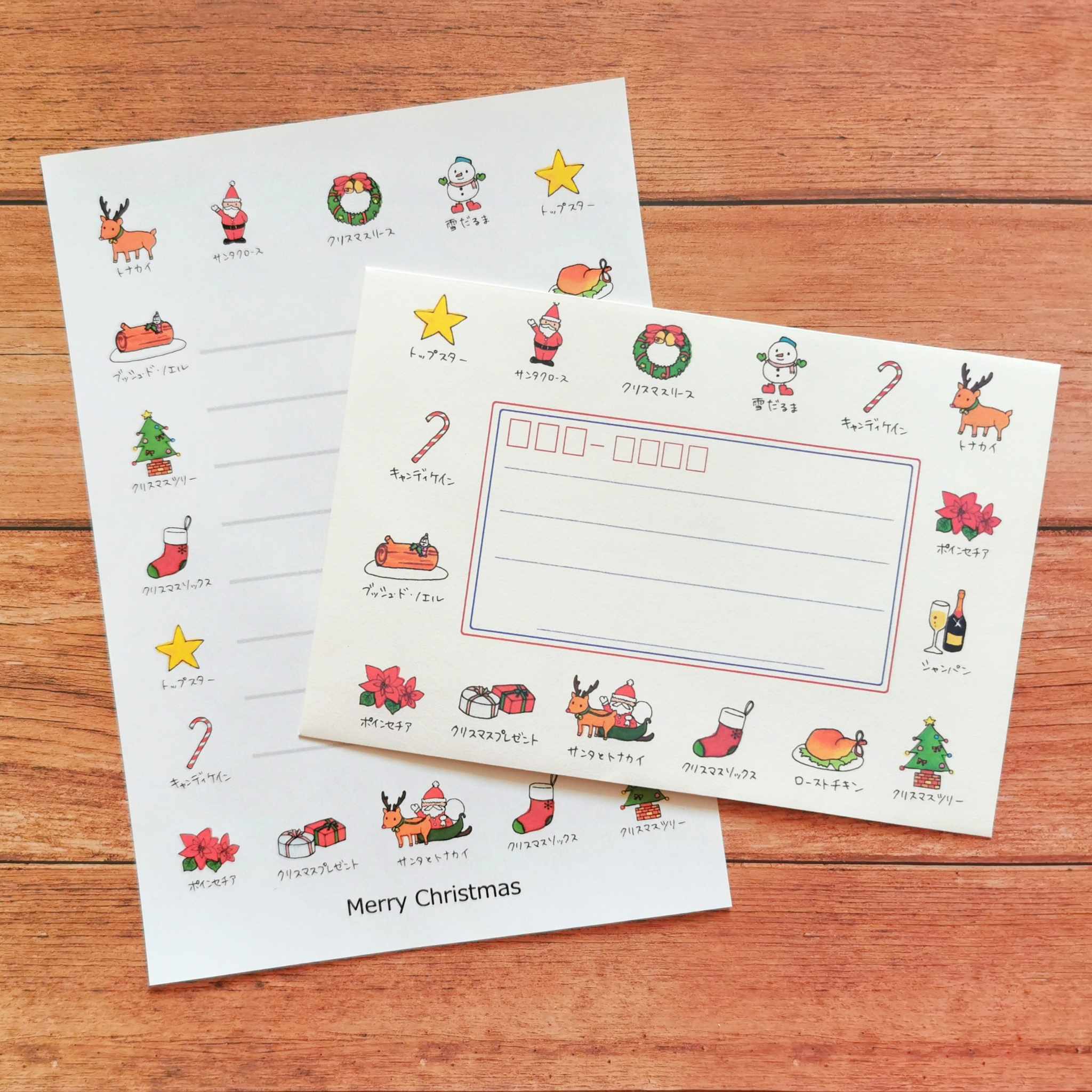 クリスマスアイテムの手描きイラストをレターセットにしました^^