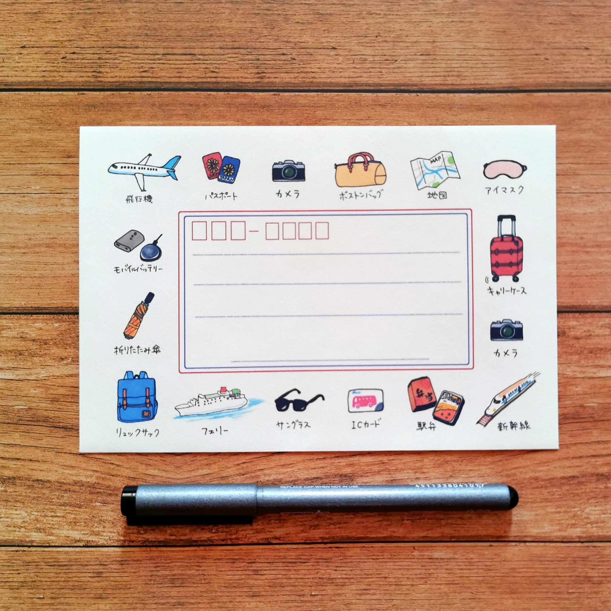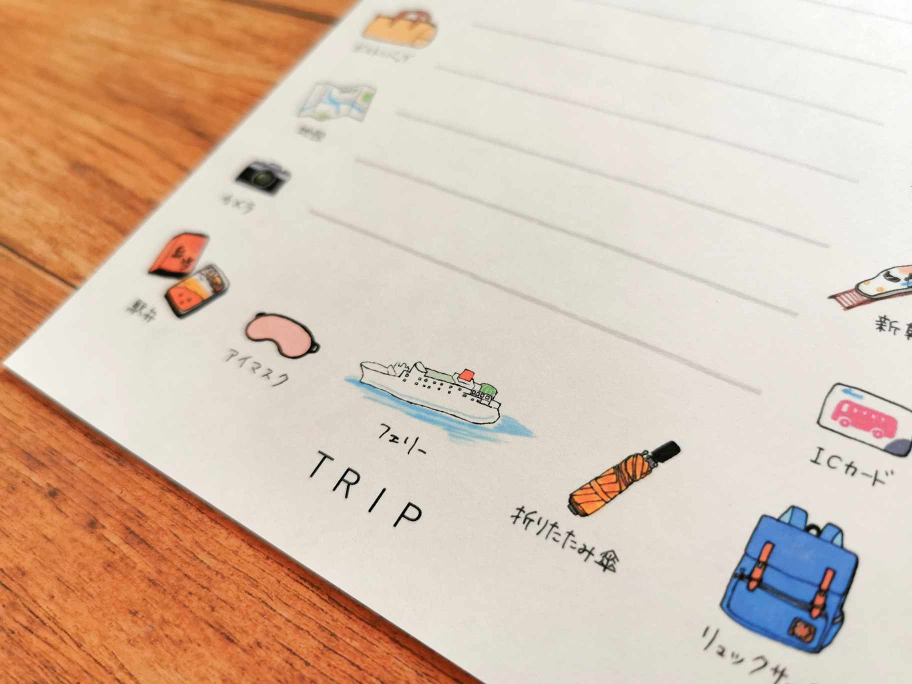旅行の必需品のイラストを描いて、レターセットにしました^^